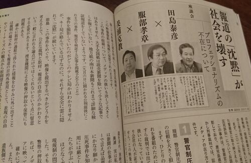 お知らせです。 9月8日発行の岩波書店「世界」10月号に、わたしが参加した座談会の記事が掲載されています。タイトルは「報道の『沈黙』が社会を壊すープロフェッショナリズムの不在について」。上智大教授の田島泰彦さん、立教大名誉教授の服部孝章さん…