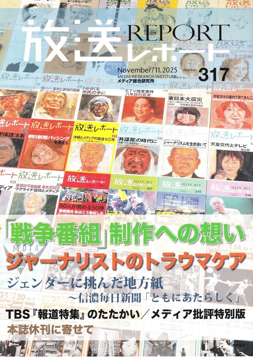 メディア総合研究所(メディア総研)が隔月で編集、発行してきた「放送レポート」が、11月1日付発行の317号で休刊となりました。その最後の1冊が先日、手元に届きました。